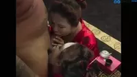 In a dimly lit room, the atmosphere is set for an unforgettable experience.Three gorgeous, young Asian women enter, each one more beautiful and sensual than the last, dressed in barelythere lingerie that accentuates their voluptuous curves and perfectly sculpted bodies.As they walk toward the man lying on a large bed, the anticipation builds, and you can already feel the heat rising within him as he prepares for a night of utter bliss.The first woman, with her silky black hair and piercing brown eyes, takes a seat next to him and begins to massage his rockhard cock through his pants, teasing and caressing it with practiced hands.Her moans and gasps tell a tale of her own desires, as her excitement grows and she starts imagining the pleasures that await her too.The second girl, with her sleek, bronzed body and tantalizing smile, removes his shirt and begins to trace feathery kisses down his muscular chest, her tongue teasing his nipples and leaving a trail of fire in its wake.As the third woman, a breathtaking blend of elegance and sensuality, takes over and begins sucking on his erection with gusto, the mans world seems to disappear as all his senses are consumed by their tantalizing touches and exquisite beauty.The two women continue to lavish attention on him, each exploring new erotic territories one teasing his cock with her mouth while the other massages his throbbing erection.Their passionate gazes meet in an exchange of unspoken hunger that fuels them all further.Suddenly, without a word, they fall to their knees and begin to kiss each other passionately, the mans arousal growing even more as he watches this beautiful display of carnal affection unfold before him.The taste and scent of one another seem to only fan the flames of desire further as they become increasingly lost in their own pleasure, each feeling the power of the others touch and kisses.As they move toward each other, a powerful energy radiates throughout the room, the air charged with electricity as the man watches them, his cock throbbing with eagerness for what comes next.He knows that they are not only here to pleasure him but also themselves a thrilling notion that only heightens his anticipation.The three of them come together, each taking a turn to service both one another and the man as their moans grow louder, more desperate and the room fills with the scent of sex.The man finds himself lost in the moment, unable to tell where one woman ends and another begins as they all become one, intertwined and moving together in a rhythmic dance of desire.The erotic atmosphere is palpable, filled with unbridled passion, and it seems like time stands still as this threesome revels in their shared ecstasy.Finally, the moment comes when the man can take no more his erection throbbing painfully and the pressure of impending release growing unbearable.With a deep breath, he surrenders himself to the pleasure, his cock jerking wildly as he begins to climax in the most intense orgasm imaginable.The women surrounding him moan in unison, their own climaxes washing over them like waves of ecstatic bliss.As they all collapse into a tangle of limbs and satiated desire, you cant help but imagine the dreams that each of these three people will have tonight as they drift off to sleep, their minds still filled with the vivid images of pleasure and satisfaction that this night has granted them.